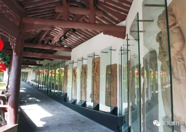 美術館旁邊不遠就是宋代石刻長廊。磚牆青瓦長廊,像巨龍一樣蜿蜒,長廊的玻璃牆裏有很多宋代的石刻,雕刻藝術卓絕,也很值得欣賞。來石刻長廊的人少,可以在這裏安安靜靜坐著欣賞宋代藝術,翠竹掩映,環境也很清幽。