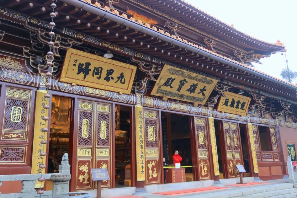 其中,著名的東林大佛是東林寺的標志,在阿彌陀佛像裏面,是中國及全球第一高的,佛像周邊都是唐風建築,春天很適合來賞櫻拍照。