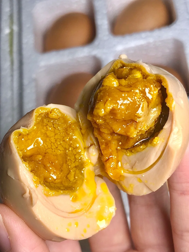 外觀上,它和鹹鴨蛋非常相似,但吃起來的口感卻大有不同。麻醬雞蛋由手工醃制,經過蒸制後蛋白滑嫩、松軟鹹香。