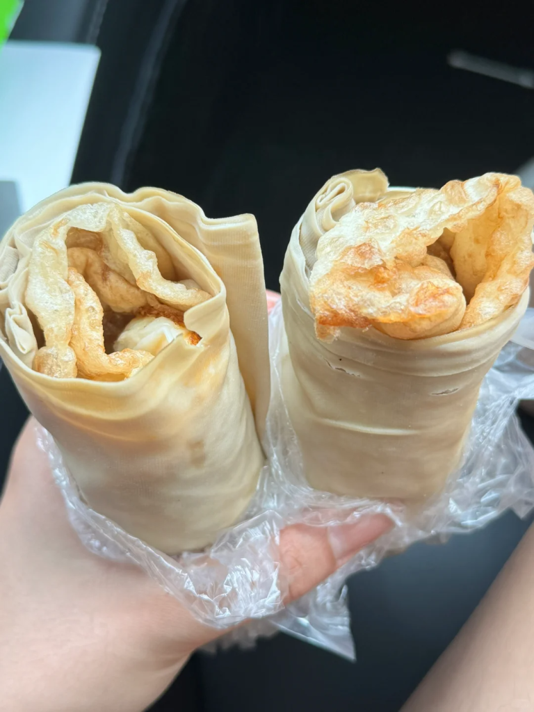 來一份豆片卷油餅加鹵蛋。豆香味十足,豆片也中和了油餅的膩,再喝上一碗嫩滑入味的豆腐腦,好吃不貴。