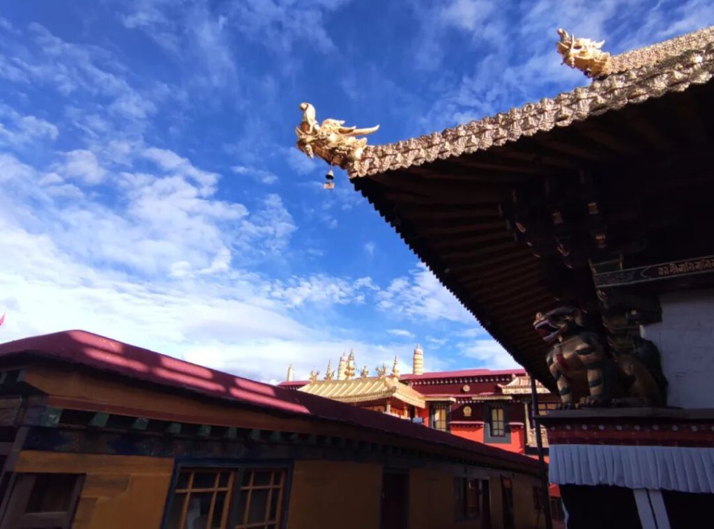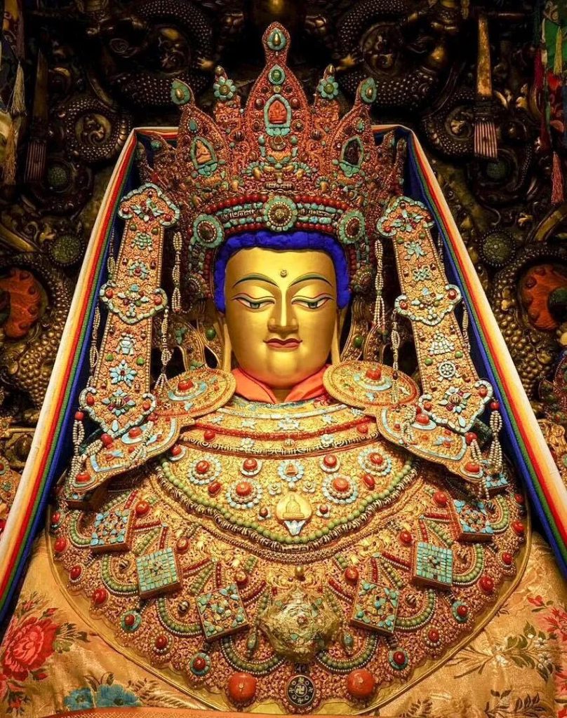 沿著窄小的樓梯上到二層。我一連轉了幾圈都是在觀察金頂輝煌的建築風格——融合藏、唐、尼泊爾及印度於一體。在循環往複的遊走中,我仿佛一個迷失在高處的人,忘記了自己的初衷——觀瞻佛祖的12歲等身像及那顆真正的天珠。就這樣,我完美錯過了這尊佛陀親自開光、加持,並授記的佛像:“看到覺沃佛,就像看到我一樣。”