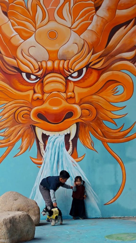 龍江新區橋下空間項目牆面彩繪以“心向龍門,錦鯉展翅”為主題,懷揣著對古老文化的敬畏與熱愛,將“龍”與“錦鯉”的元素巧妙融入現代牆體藝術之中。
