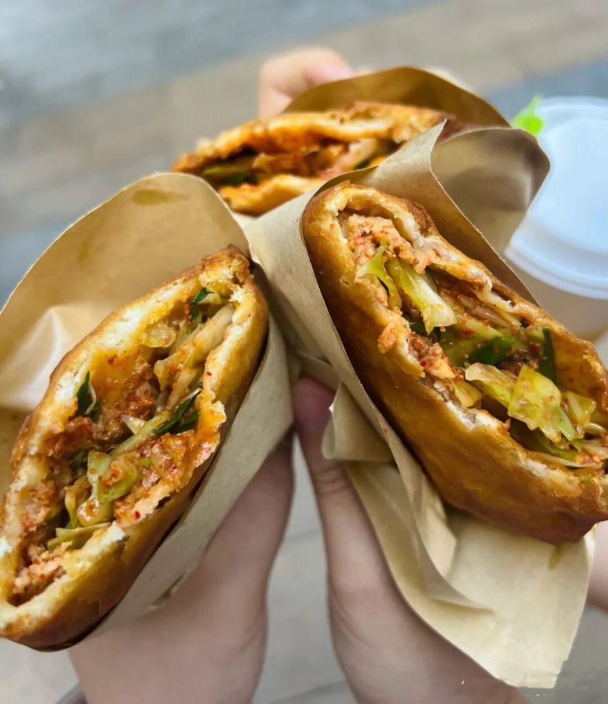 西轉盤的熊餃子個頭大,有肉、菜兩種餡料。剛出鍋的炸餃子,外皮金黃酥脆,咬下去 "嘎吱" 作響,內裏餡料豐富,別有一番風味,關鍵是吃起來一點都不油膩,無論是作為早餐開啟活力滿滿的一天,還是逛街途中的解饞小吃,都再合適不過。