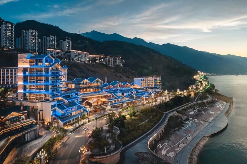 巫山華邑酒店位於龍江新區,距巫山高鐵站直線距離6公裏,坐擁長江和大寧河美景,緊鄰長江巫峽,南向湖北恩施,西鄰奉節白帝城。酒店設計連結古典與當代,運用先鋒美學將千年風雅融入設計之中,邀請賓客在古今相逢處推開曆史之門,對話人文巫山。