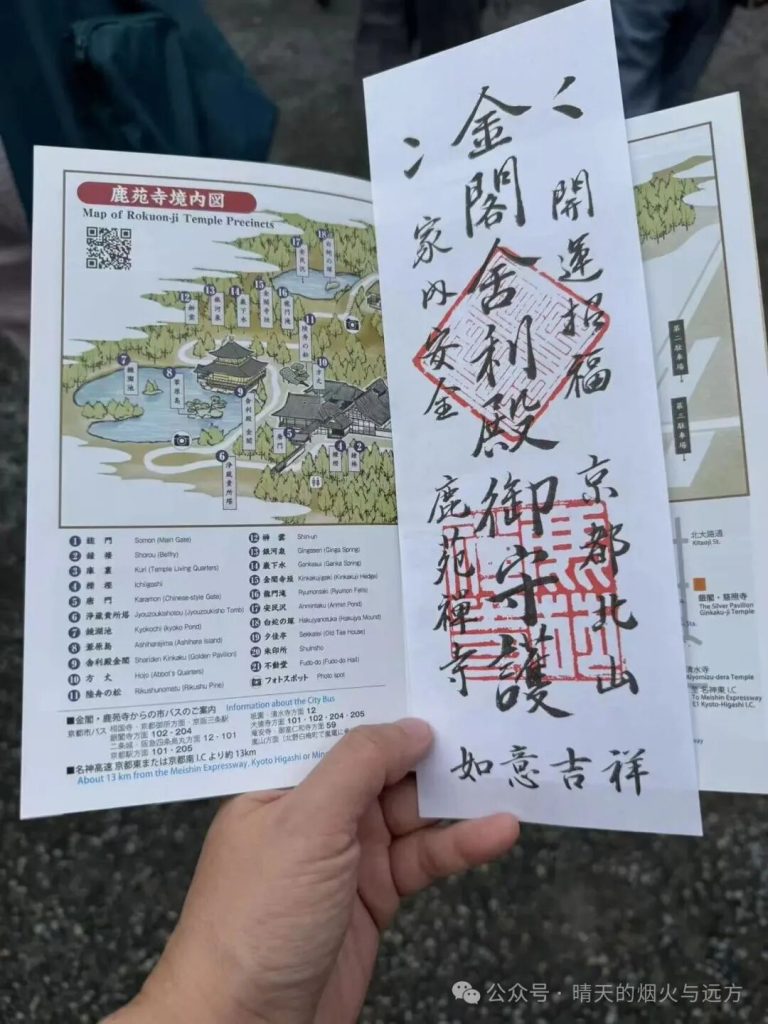 金閣寺的門票不是普通紙片,而是一張寫有“家內安全”“開運招福”的符紙禦守,非常有紀念意義。成人500日元,兒童300日元,現場購買即可(需付現金)。