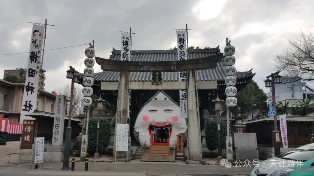 我們去的時候是立春之前,神社門口裝飾著一個多福之神的臉,據說穿過這個福神之口能招來幸運,如果你有計劃在1月去福岡,別錯過去櫛田神社走一走。