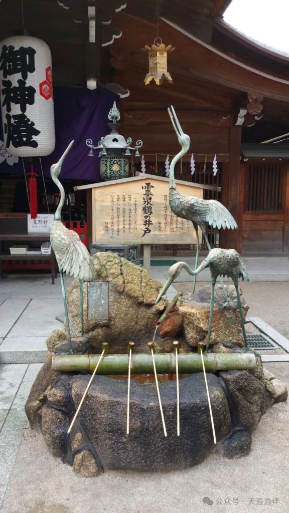 櫛田神社因保佑不老長壽、生意興隆聞名。神社內有一口雲泉鶴之井,據說喝第一口保佑自己不老長壽,喝第兩口保佑家人,喝第三口保佑身邊所有的人。不過這水是含有鹽分的,不能多喝。