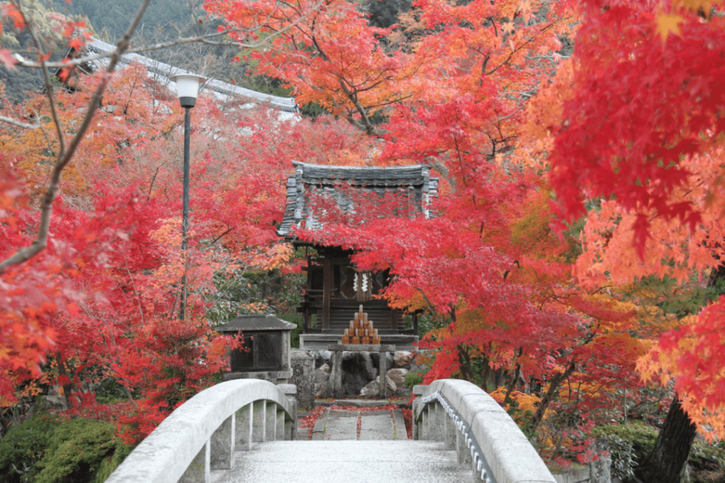 大原位於群山環抱的盆地,晝夜溫差顯著,因此楓葉色彩格外明豔。