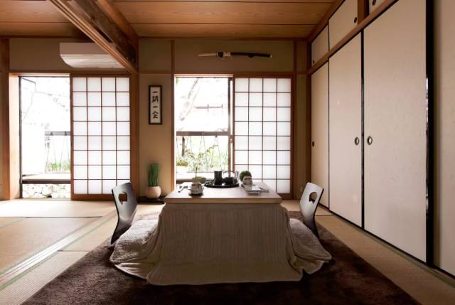 最愛的就是這種日式暖桌了。把門打開,與同行友人一邊賞著河畔美景,一邊圍著暖桌烹茶煮酒,想想就很美好。