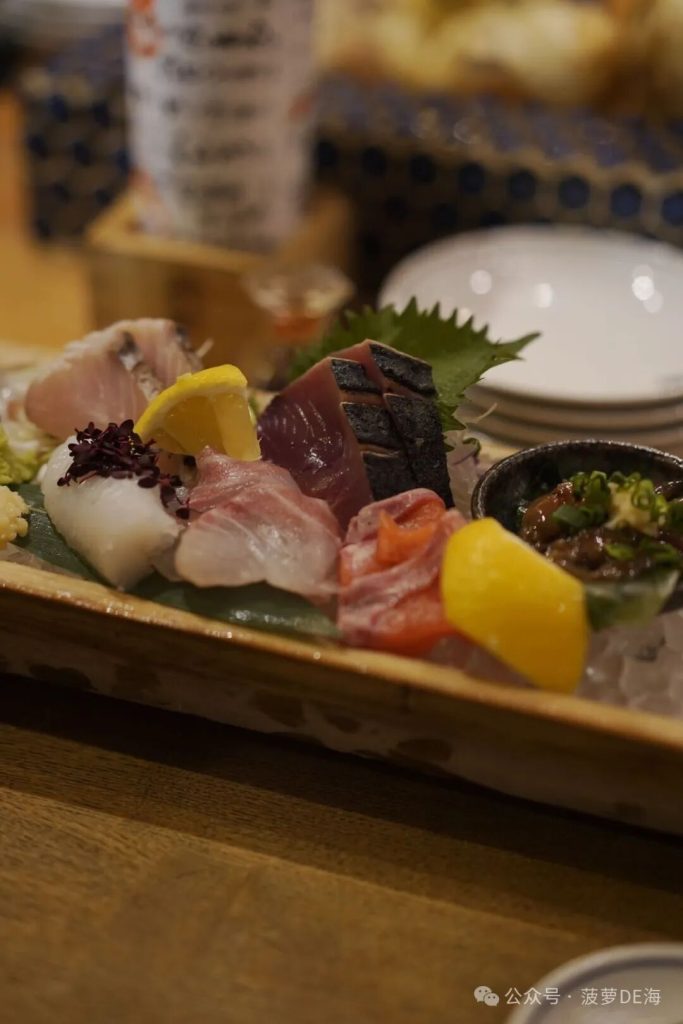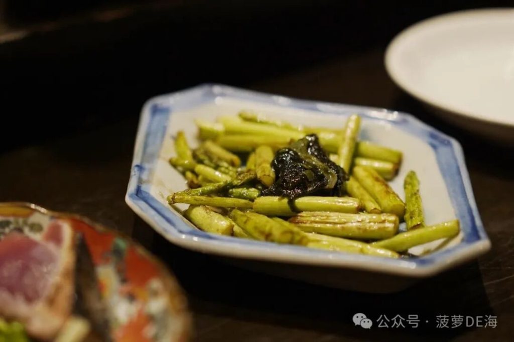 刺身拼盤都是春日的魚類,主廚用日語依次介紹,有“䲠”,也就是馬鮫魚,是日本春季的象征性魚類。寧波人也認為清明前的馬鮫魚最為肥腴美味。有“鯛”,因其粉白的色澤如同櫻花,被稱為“櫻鯛”,也是這個季節必吃的美味。“鰹”,春季的“初鰹”肉質彈嫩清爽。