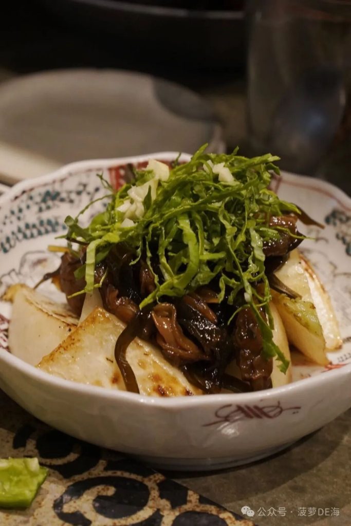 鐵板燒牛蒡,口感類似山藥,微甜脆嫩。配上佃煮的蛤蜊肉和海帶,鮮甜彈嫩和清甜爽脆形成了恰到好處的對比。