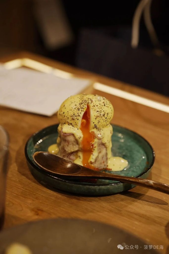 朋友按著 google map 推薦菜點了單,每道菜都做得很精致,符合如今社交媒體的“出片”需求,口味反倒比較平常。土豆泥堆得高高,上配一個流心的煮雞蛋,看起來像是在餐桌上豎起了地標建築供眾人用相機崇拜。