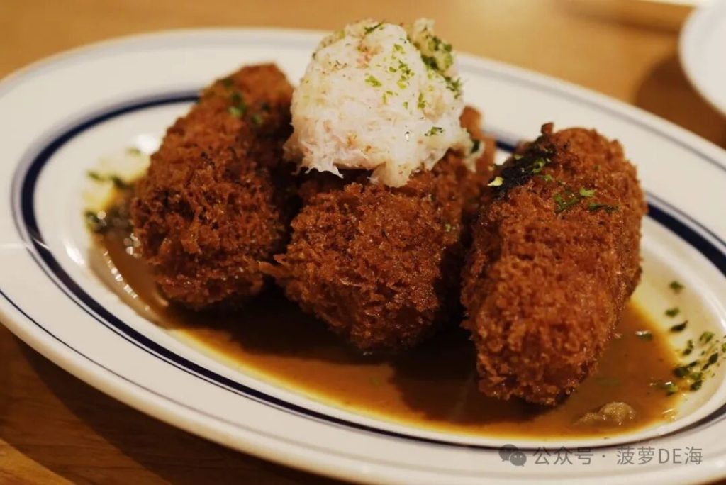 蟹肉奶油可樂餅,非常燙!外殼炸得脆也不油膩,內部則是土豆混合奶油,細膩流心。
