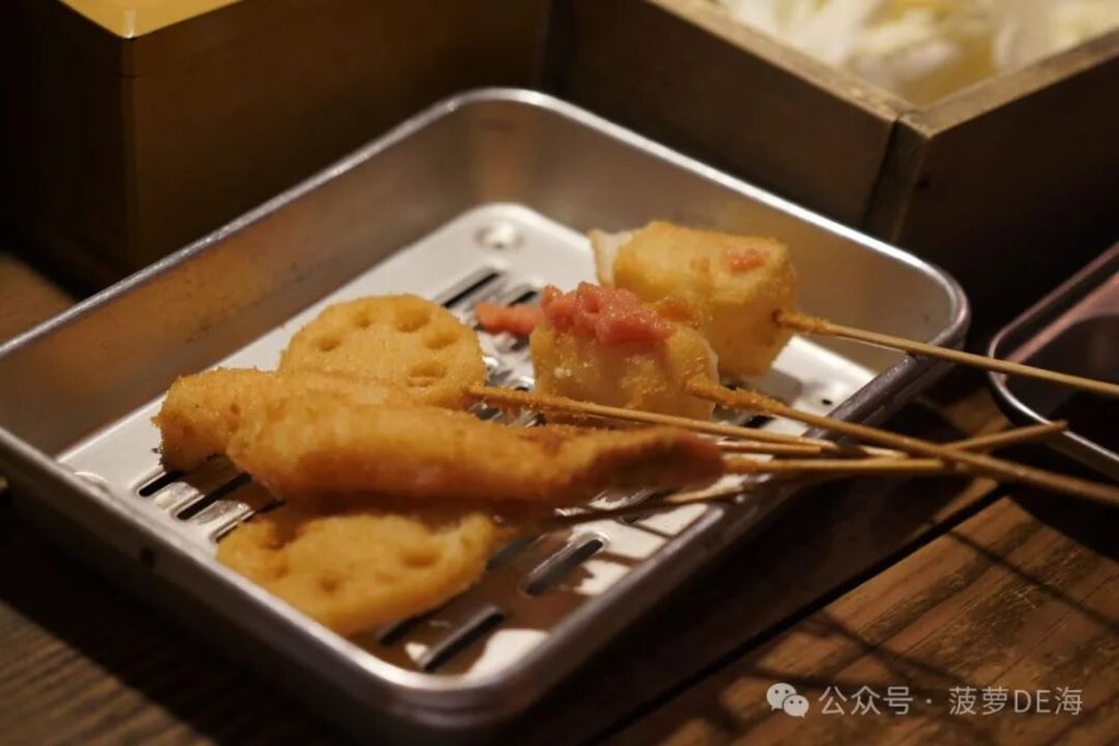 招牌菜是真的寫在了招牌上,炸串和煮牛尾。炸串是關西特色,裹一層薄面衣高溫炸,能做到外皮酥脆內部飽滿也不油膩,配上特色醬汁非常好吃。我最喜歡炸蝦和炸蓮藕。