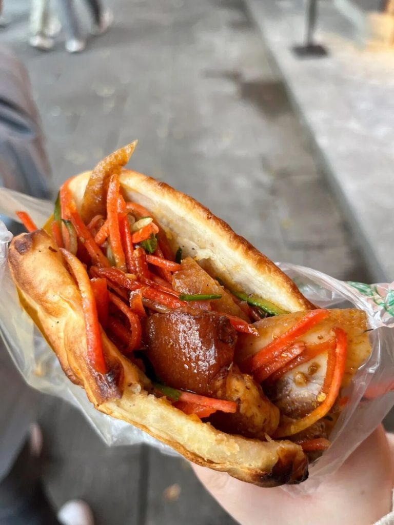 鍋盔:鍋盔挺好吃的,推薦大家老實點特色的涼粉或者涼皮,我點了個鹵肉,裏面全部包的肥肉。