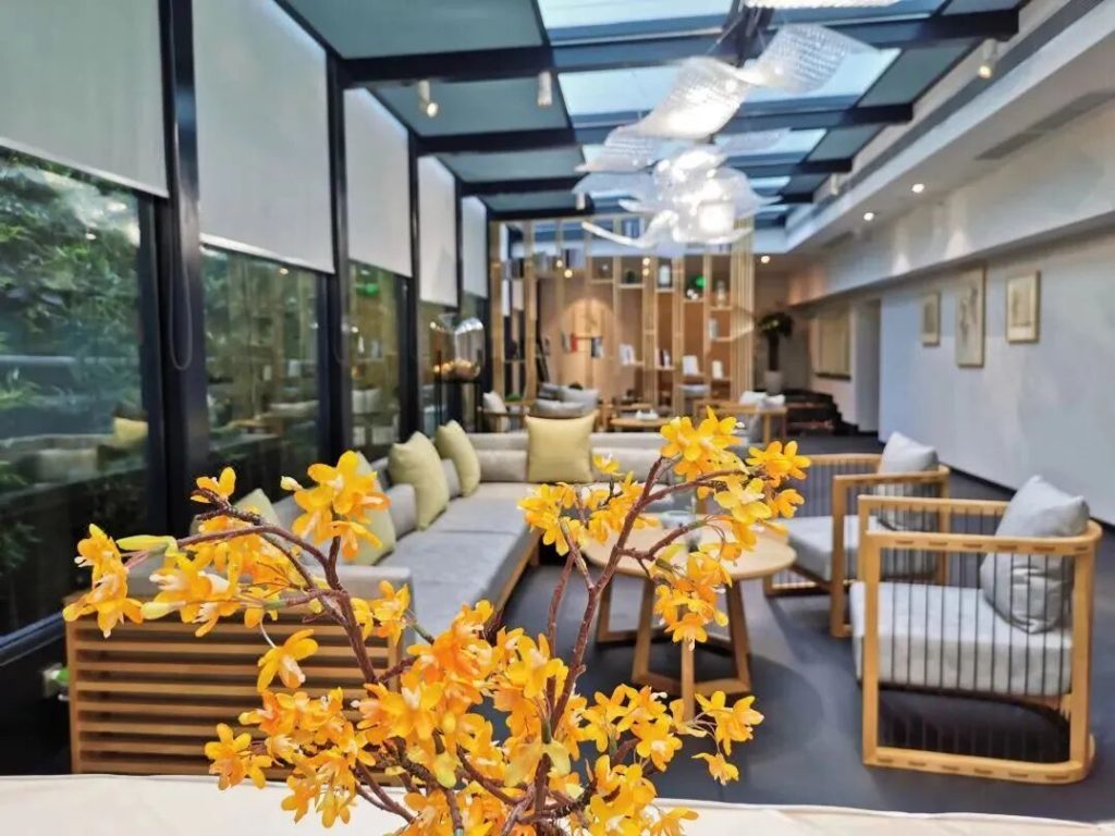 酒店西臨自然森林公園,北接綠心濕地公園,是漫步養生的上選之處。酒店內樹木蒼鬱,靜謐幽雅,是鬧市中的一片清靜之地。住在這裏,不僅能享受優雅的環境,而且距離張公橋好吃街、上中順特色街區等熱門打卡地不遠,吃耍都方便。