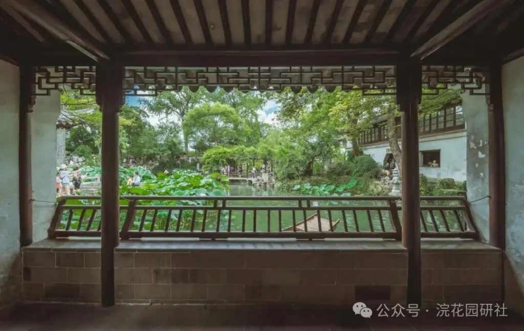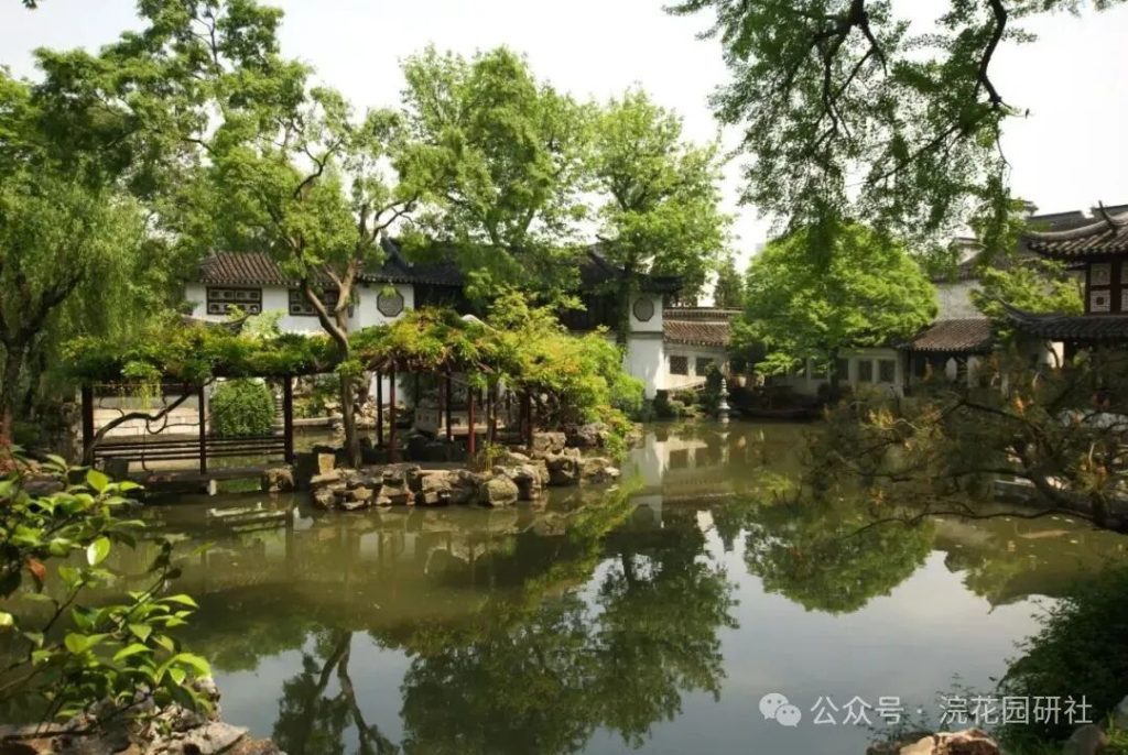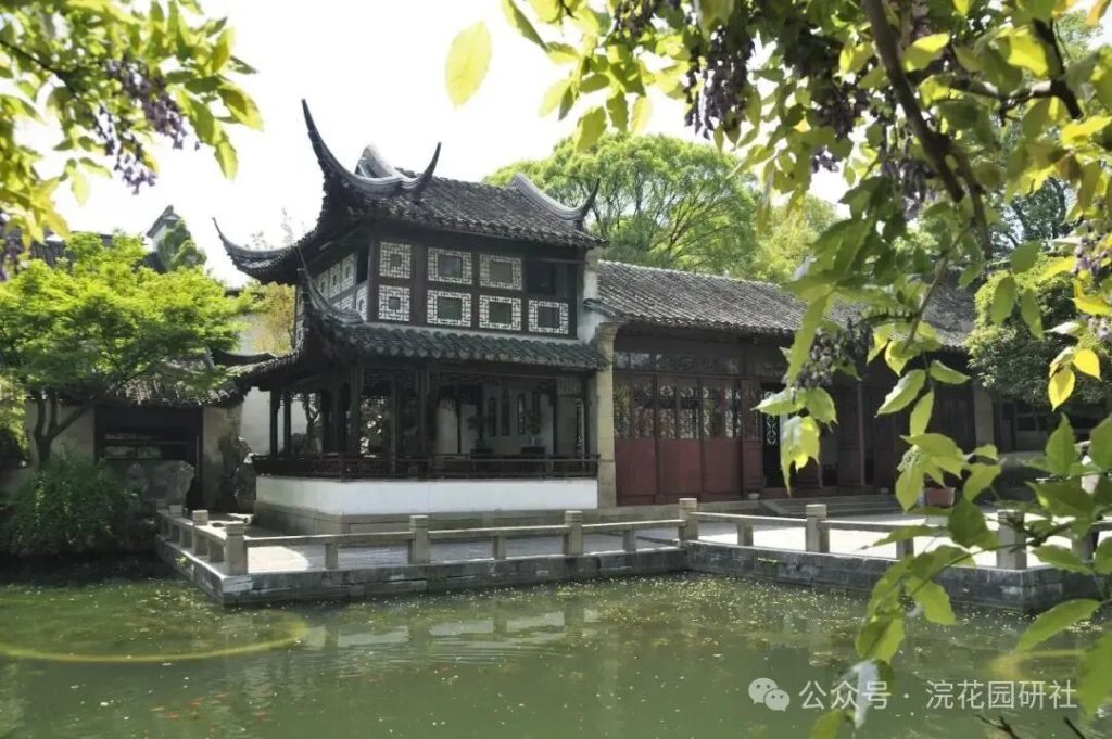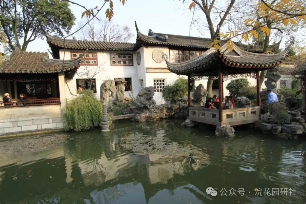 整個區域以約兩畝的不規則池水為中心,水面清澄如鏡,岸線曲折回環;環池而築的建築、假山、遊廊彼此因借,形成一幅“可行、可望、可居、可遊”的立體畫卷。