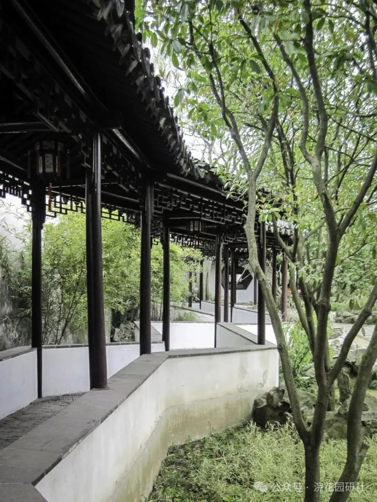這些空間既獨立又互為借景:先到者可於軒中撫琴,可於齋內對弈,亦可小立於月洞門前,看晚照斜映粉牆,竹影搖曳。造園者利用建築的高低錯落與牆垣的斷續開合,使遊者“無往不複、無幽不至”,在咫尺之間體驗層出不窮的趣味。