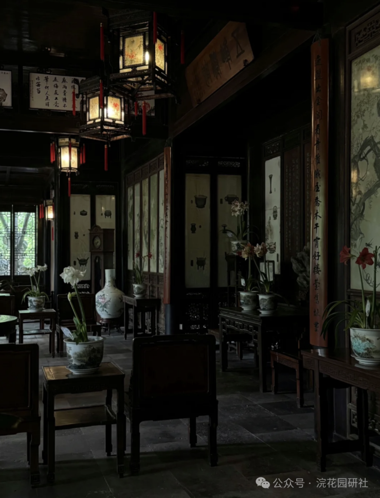 主廳“林泉耆碩之館”面峰而設,舊時文人坐於廳內,即可品石、賦詩,所謂“一峰則太華千尋,一勺則江湖萬裏”。