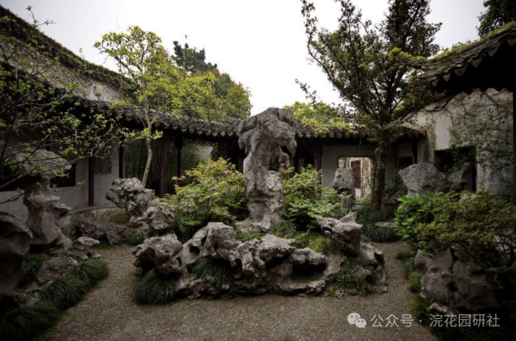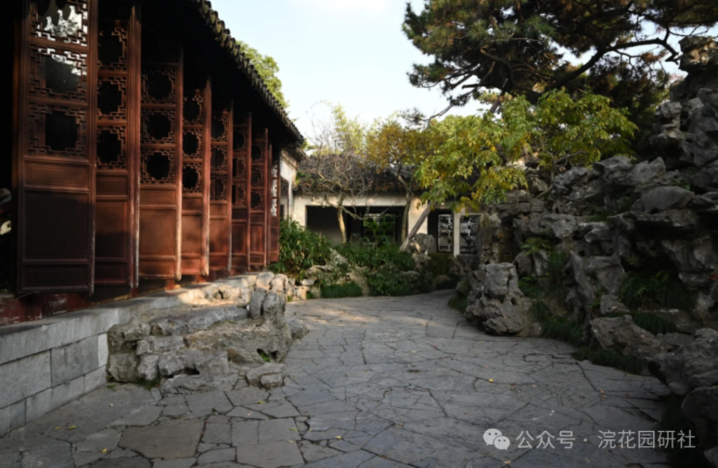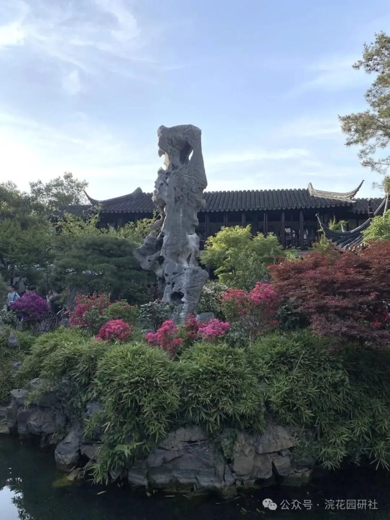 它們前方的寬敞平台是觀賞黃石假山與水中倒影的最佳處,這是蘇州園林“隔水面山”經典手法的運用。
