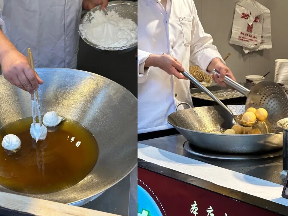 它在上世紀70年代就入選了《中國菜譜》的傳統特色名點,炸制而成,個人覺得和東北菜的雪綿豆沙有點類似。蓬松的蛋清包裹著香甜的豆沙餡,吃的時候可一定要小心燙口。