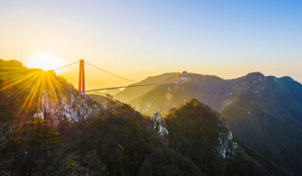 天蒙景區推薦路線:東門入口→乘坐觀光車或步行→《沂蒙山小調》活態博物館→步行上山→望海樓→ 世界第一人行懸索橋→塔山玻璃觀景台→玉皇宮→步行或乘坐下行索道下山→觀光車回東門。