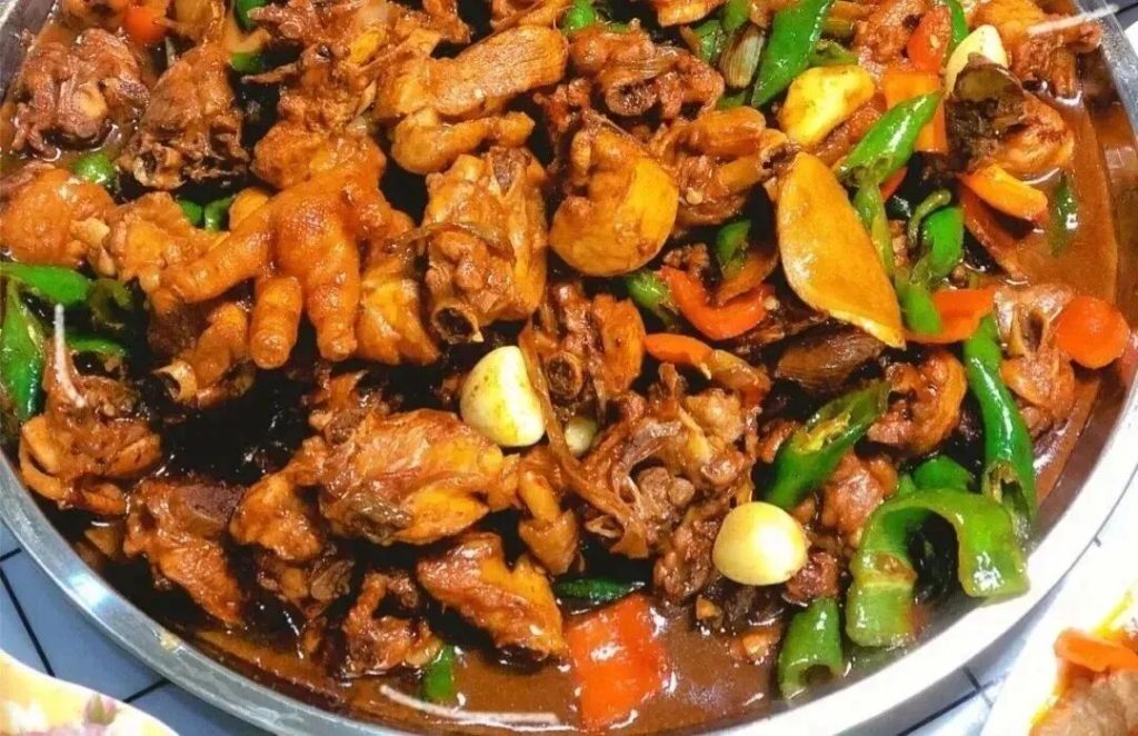桌上一擺,赤色的雞肉點綴著豔麗的青紅椒,升騰的熱氣夾帶著雞肉的鮮美,咬上一口唇齒留香。