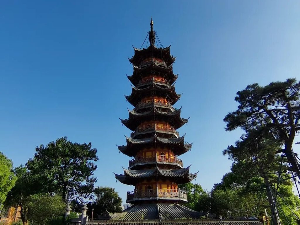 首先引入眼簾的是約41米高的龍華古塔,這座佛塔應該是宋太平興國二年(公元977年)時期重建的七層八角形宋代木塔結構,塔內部為磚心,磚心內部還有方形小室,外部則為木造走廊。