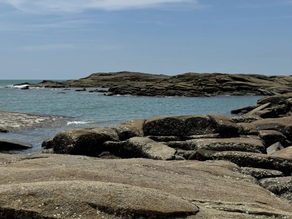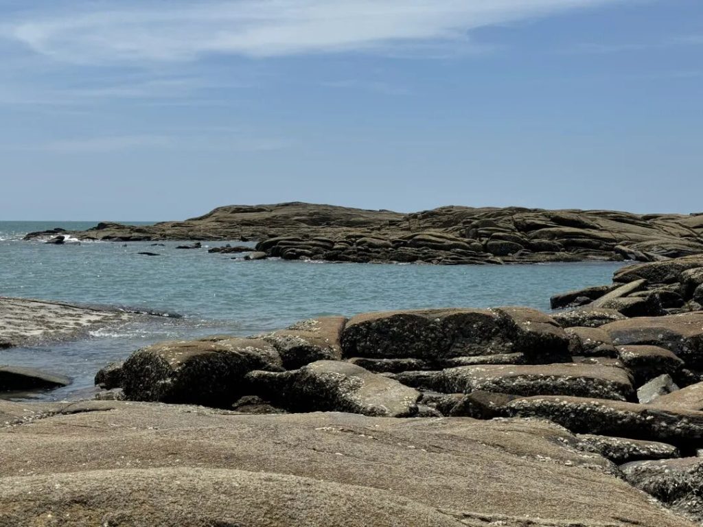 參拜過後,我們沿著岸邊走向礁石密布的海邊。彼時正是正午,烈日像一枚燒紅的烙鐵懸在頭頂,光線毒辣得讓人不敢直視,連空氣都被烤得發燙,每一次呼吸都像是吸入了一團熱氣。