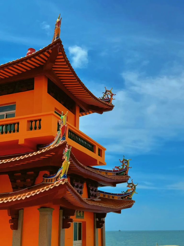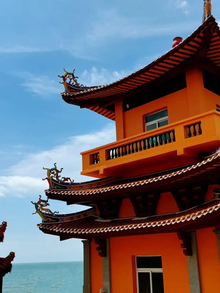 海風卷著鹹澀掠過耳畔時,忽然想起那些關於海龜馱石、神鷹引路的傳說 —— 原來這片海早就和寺廟的紅牆綠瓦纏在了一起。