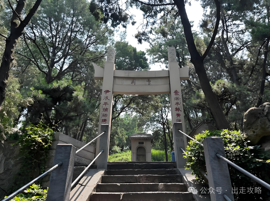 白園是為了紀念唐代大詩人白居易而修建的,此園依山而建,峰翠水碧,秀麗古雅。白園坐落於洛陽市城南13公裏處的龍門東山琵琶峰上,占地44畝,這裏東西兩山對峙。伊河由南向北穿山而過,一橋飛架東西;宛若一道彩虹。