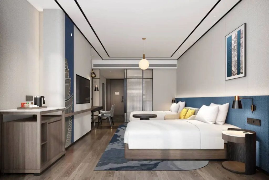 新酒店的室內設計在保留萬豪酒店經典的現代風格基礎上,創造性地加入靈感源自唐宋時期洛陽園林的建築藝術精華,巧妙的詮釋了傳統文化和現代藝術結合之美。酒店空間中增加了柱廊和門扇來表達莊重的秩序感和儀式感。大堂牆面的設計靈感來自龍門石窟,采用自然石材,以現代藝術手法進行創造性拼合,呼應洛陽悠久的建築遺產和曆史文化底蘊。