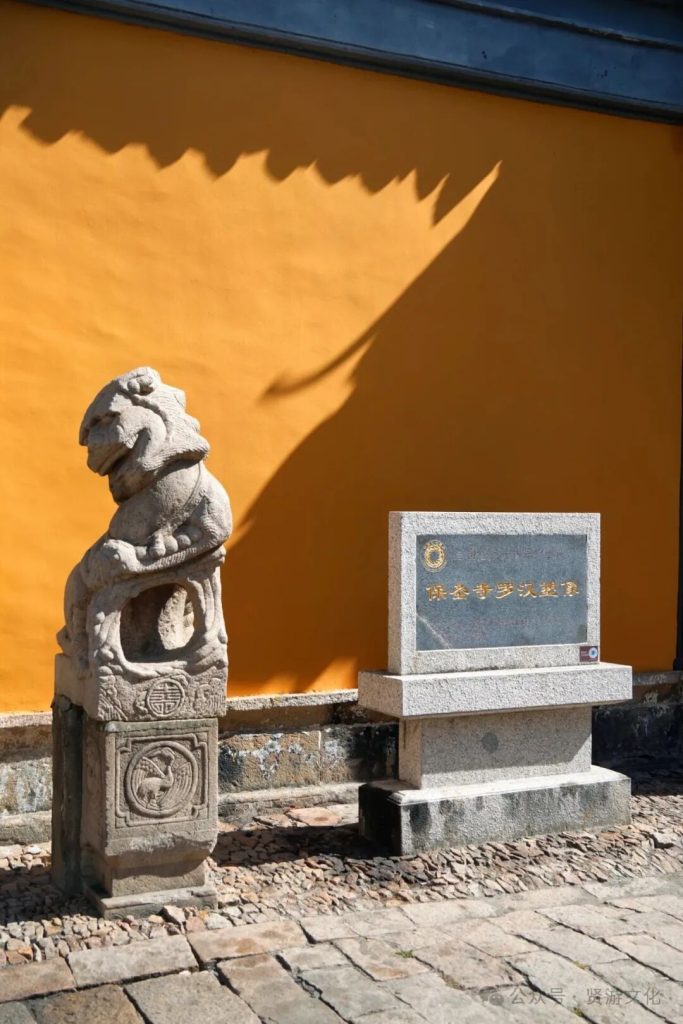 保聖寺內擁有第一批全國重點文物保護單位聖保寺羅漢塑像,堪稱千年前匠人的不朽藝術。相傳這些泥塑羅漢是唐朝“塑聖”楊惠之的作品,後經考證實為北宋人所塑,明清之人曾多次塗飾。殘留下來的九尊羅漢由兩壁相對擺放改為合並一壁朝外。寺內禁止拍照,因此我們未能拍攝羅漢雕像的震撼畫面,建議身臨其境仔細觀摩,更為合適。此外,保聖寺院落中有兩件古物,一件是“尊勝陀羅尼經咒石幢”,此幢為唐大中八年(854年)建,宋紹興十五年(1154年)重立,原在山門前,後移於此,正是唐大中年間創立保聖寺的實證。另一件是一口明末清初所鑄的雙首四爪龍大鐵鍾。
