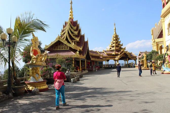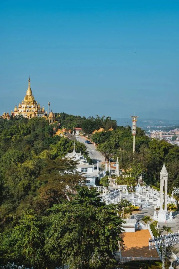 大金塔,是芒市的標志性建築,也是傣族、德昂族的宗教聖地。作為芒市的旅遊打卡地之一,因其海拔較高,可以在雷崖讓山上俯瞰整個芒市,所以一定要來這兒留個紀念。