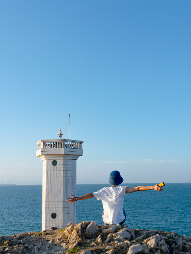 午後 2-4 點的斜射陽光勾勒出燈塔清晰剪影,礁石紋理在光影中層次分明,隨手可拍出日系膠片質感的大片,旁邊還有一個貝殼打卡牆也非常出片