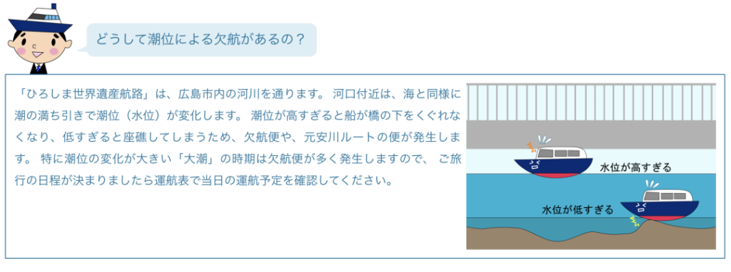 如果想快速從廣島市區到達宮島的話也可以選擇在原爆館附近坐快速船,單程2200日元,無需換乘,時間只需電車方案的一半。