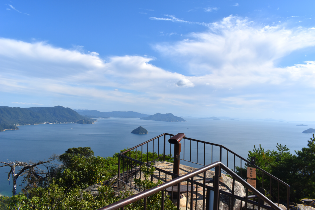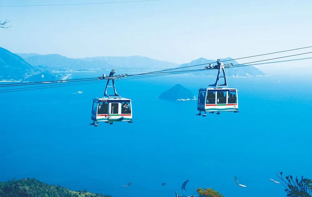 剛下車便能走到獅子岩觀景台,眼前壯麗的瀨戶內海如同鋪開的藍色畫卷。若再往上繼續攀登,還能抵達彌山山頂的觀景台。天氣晴好時,從這裏甚至能望見九州與四國的山脈輪廓。