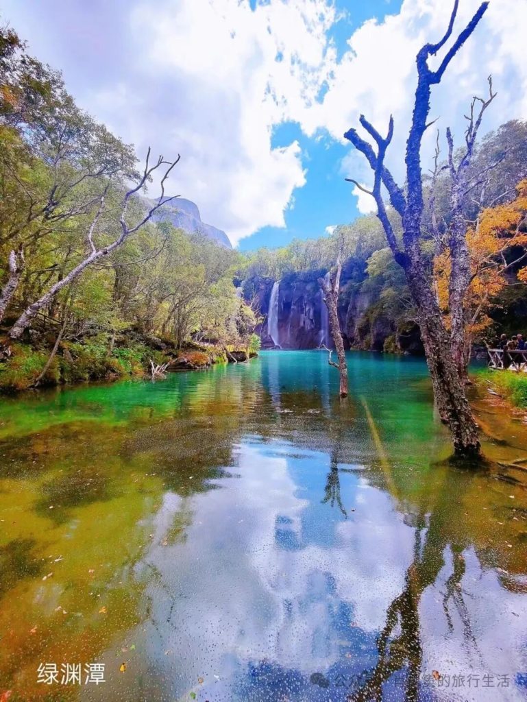綠淵潭水平如鏡,綠意盈盈,也可稱其為“綠天池”。