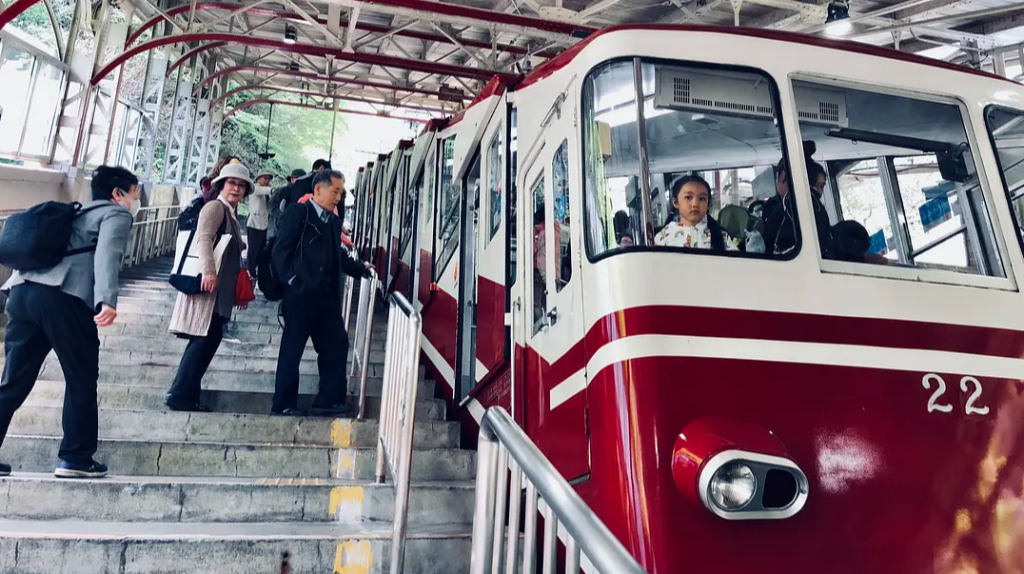 高野山位於海拔800米處,有117座寺廟,是日本著名的佛教聖地之一,也是日本夏天著名的避暑聖地。從大阪市內搭乘南海高野線抵達極樂橋站後,可以換乘南海高野山纜車,只需約5分鍾便可抵達高野山。