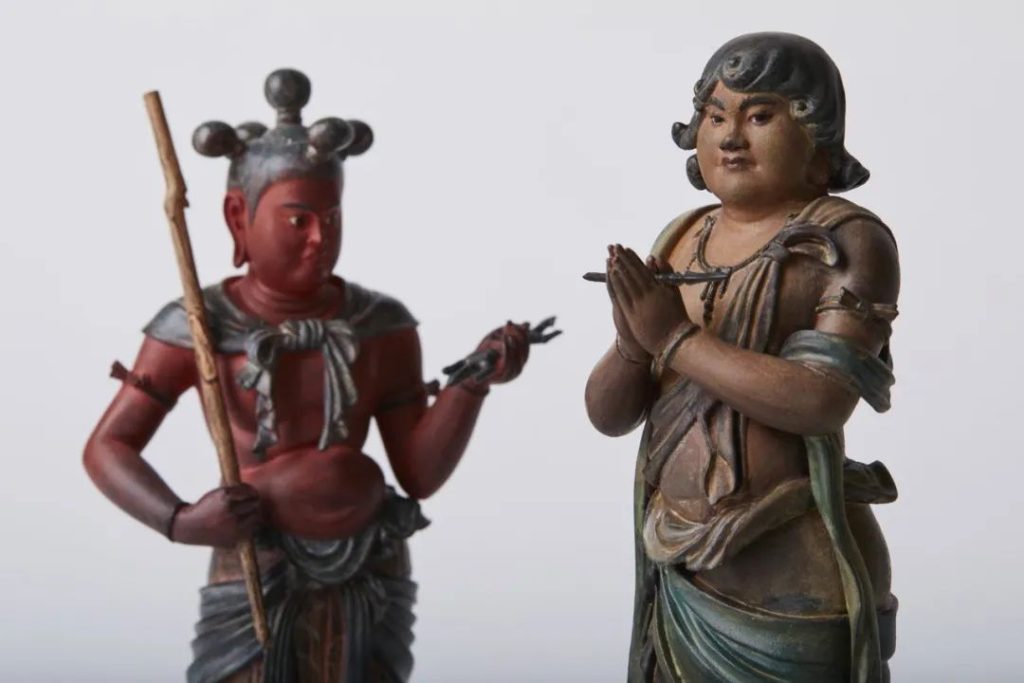 而日本本土佛雕大師運慶雕刻制作的八大童子立像,也作為國寶收藏在靈寶館中。目前常年展出的為矜羯羅童子像與制多伽童子像,運慶的早期作品受唐風影響頗深,整體色澤柔和,且注重凸顯人物造型,這兩件作品便是最好的體現。