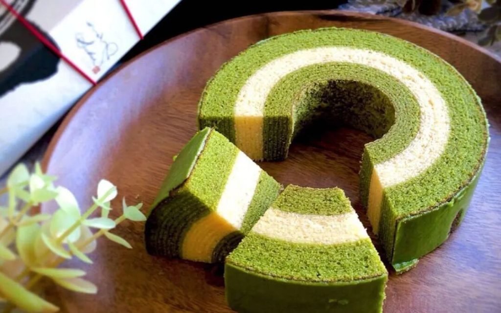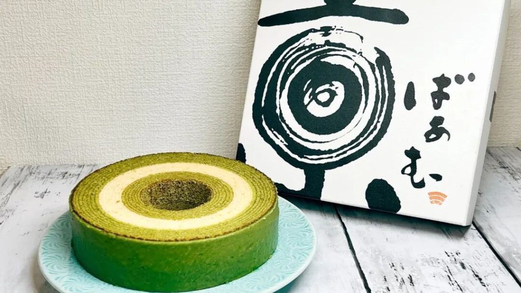 年輪蛋糕(京ばあむ)嚴選日本京都食材,是唯有京都才能制作的宇治抹茶豆漿年輪蛋糕。以日本傳統森半宇治抹茶及京都產豆漿,經多層次烘焙出濕潤松軟的口感。白色蛋糕體融合京都產豆漿與 100% 日本高品質面粉,其上疊層森半宇治抹茶與煎茶混合的抹茶層,最後淋上以森半抹茶為基底的糖霜。