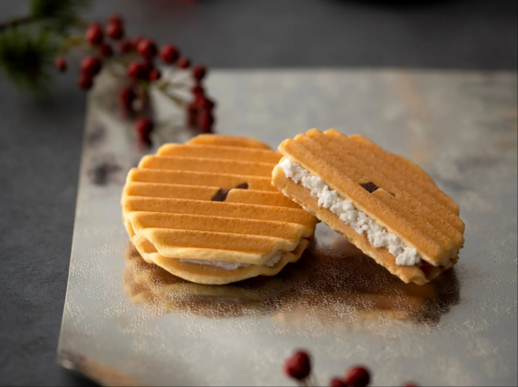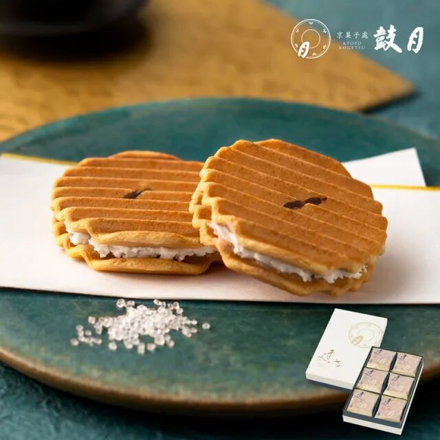 1963 年,「京菓子處鼓月」引進德國設備,首創千壽煎餅。這款點心以華夫餅般的波浪形餅胚夾入奶油,工藝在當時堪稱新穎。