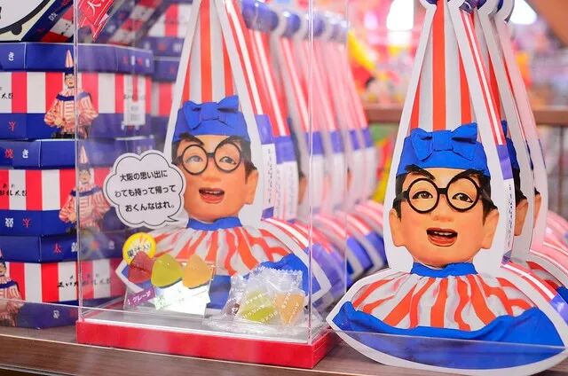 “食い倒れ太郎”趣怪的樣可以說是大阪的象征。市區いちびり庵售賣各種關於相關的商品,襪子、吊飾、資料夾到布丁、煎餅等通通都有。其中焦糖布丁最受歡迎,在布丁上淋上焦糖醬和碎焦糖,超級美味的說!