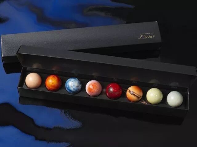 L’éclat星球巧克力它是將巧克力手工制成一顆顆星球的模樣,甜兒不膩。每一顆的口感味道都不同,奶油檸檬(金星)、香草(木星)、卡布奇諾(海王星)、可可(地球)、芒果椰子(水星)、奶茶(天王星)、郎姆葡萄酒巧克力(土星)、甜橙堅果仁(火星)。