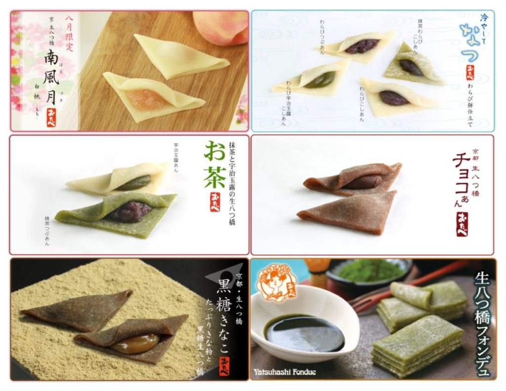 京都生八橋是一種日式甜點,在柔軟的面皮內加入各種口味的內餡,再做成三角形的外觀,有多種口味可選,比如巧克力、草莓,還會根據季節出一些時令口味。外皮很軟糯,內餡吃起來香糯醇厚,甜度剛剛好,甜而不膩,有淡淡的清香味。冰鎮過後再吃,更是透涼甘爽,配清淡的抹茶正好別有一番風味。