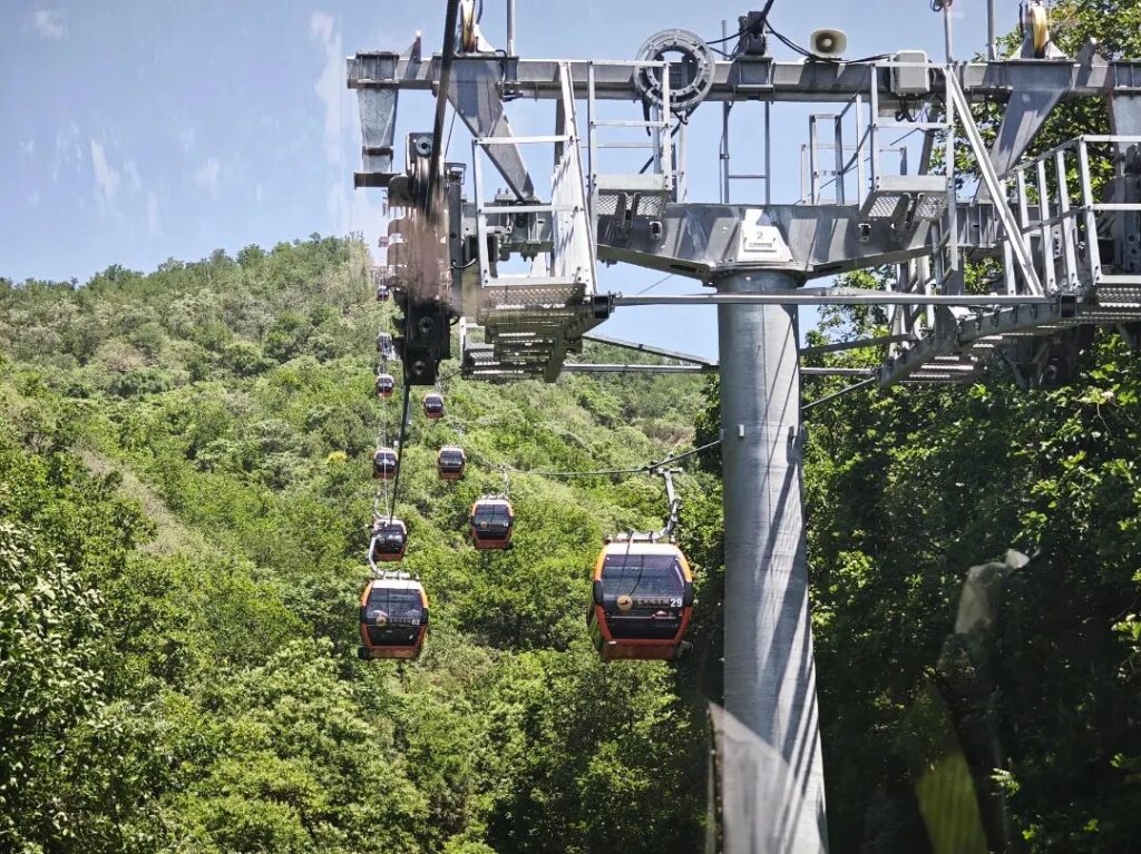 滑道排隊的人很多,基本上都是帶孩子的家庭或者是年輕人。我覺得索道的風景更美,選擇了索道,居然還不用排隊。