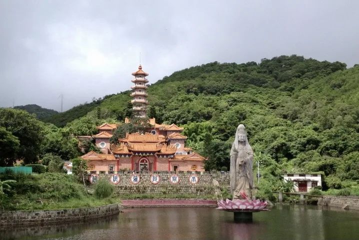 屏山岩石島上最值得去的寺廟,曆史能追溯到清朝,古老莊嚴。背面是山,面朝大海。寺裏有七層寶塔可以登,登頂可以遠眺整個深澳灣、海上漁村和獵嶼。