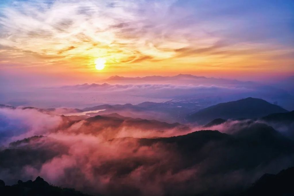 大尖山是汕頭的第一高峰,海拔有588.13米,純爬的話極度費腿,普通腳力光上山都要4個小時。自駕就輕松許多,車能直接開到海拔500多米,再走個十幾分鍾山路就能到山頂,如果能追上一場落日,絕對是人間值得。