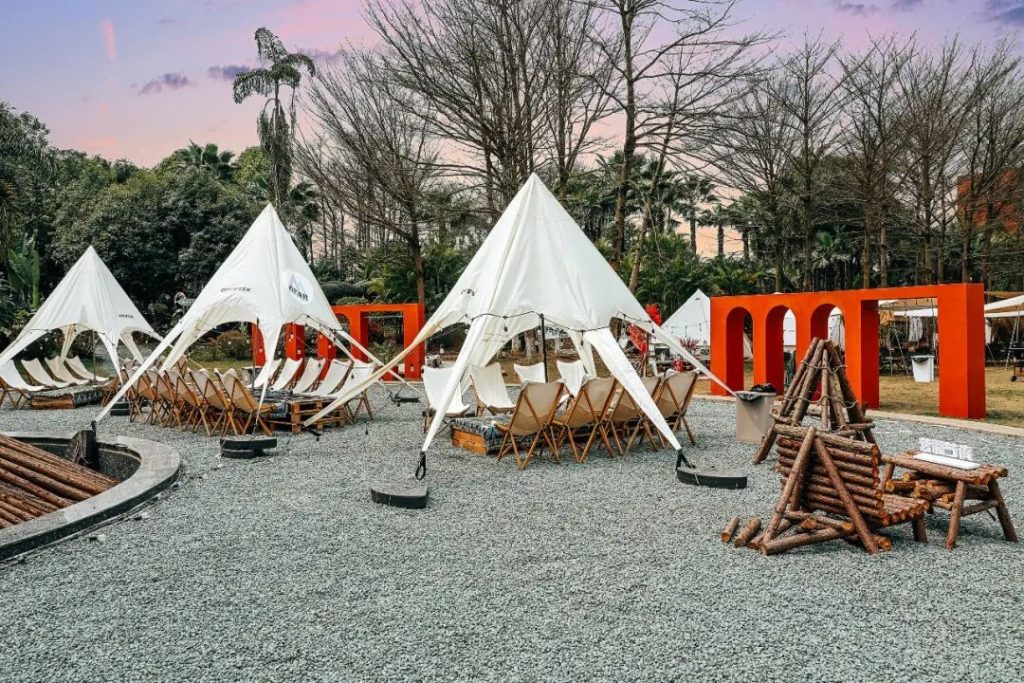 營地位於廣西規劃館戶外草坪,地處五象新區核心區,緊靠宜家商圈,近享“南寧之夜”街區,占地3000平方米。在繁華的都市鬧中取靜,讓你在享受都市的便利的同時,也能沉浸在自然的懷抱中。