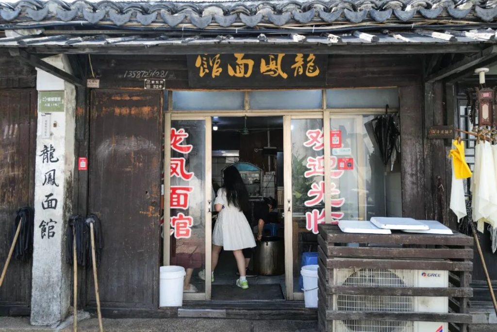 距離景區門口百來米,門頭屋角飛簷,辨識度很高,典型的江南水鄉風格。